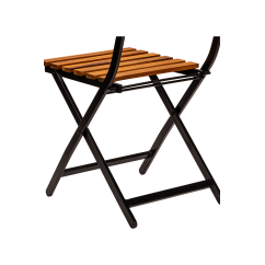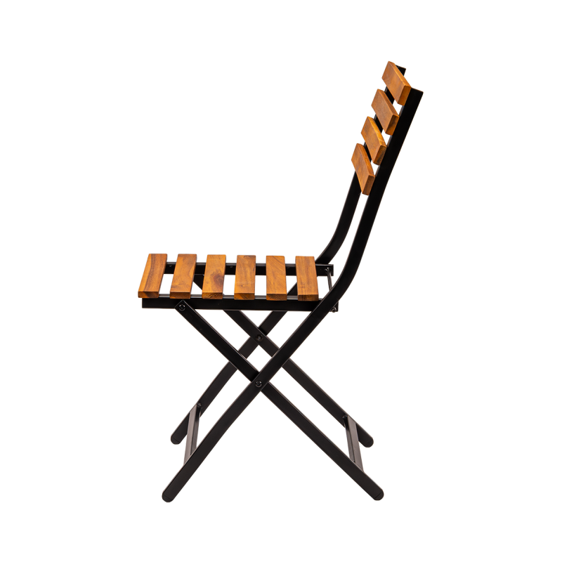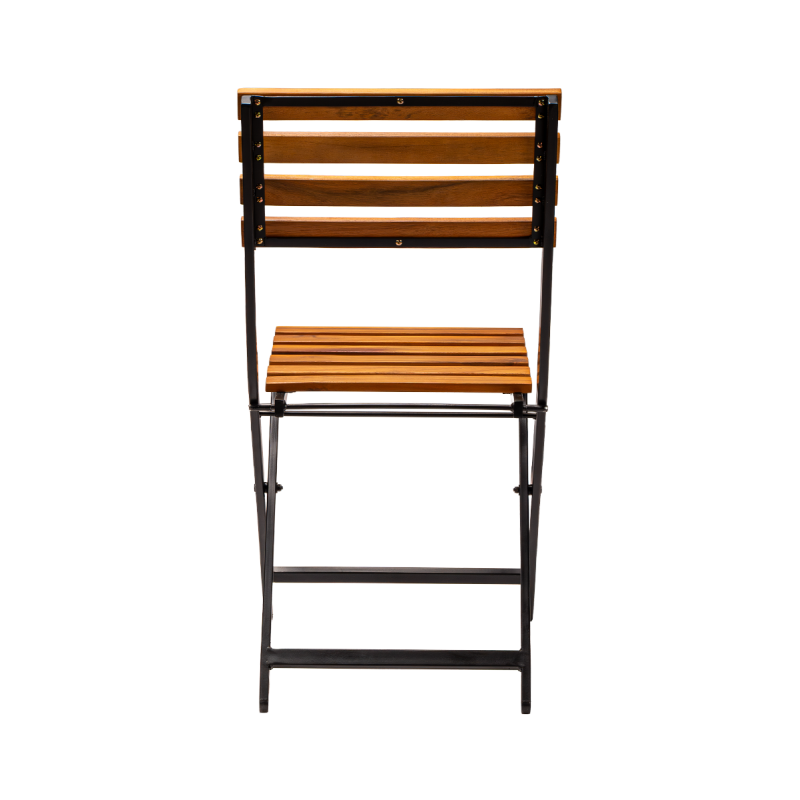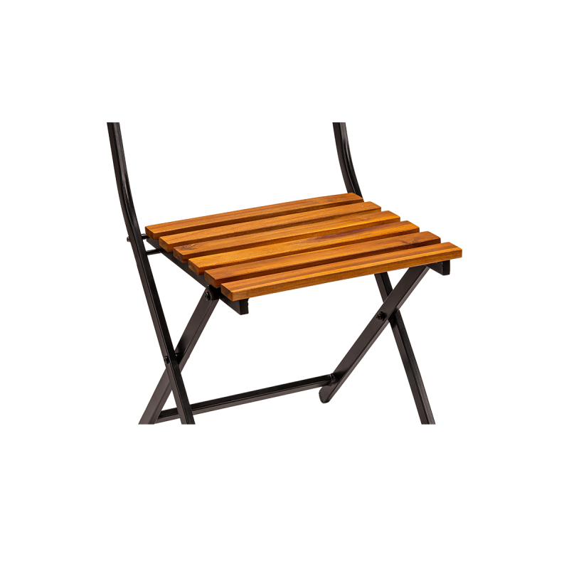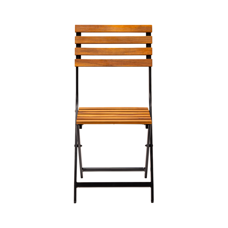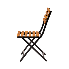 The powder-coated steel frame guarantees stability as well as resistance to intensive use and weather conditions. The seat and backrest, made of wooden slats, give the chair a natural character while ensuring comfortable seating. The chair features a foldable design, making it easy to store, transport, and quickly prepare the space for guest service.