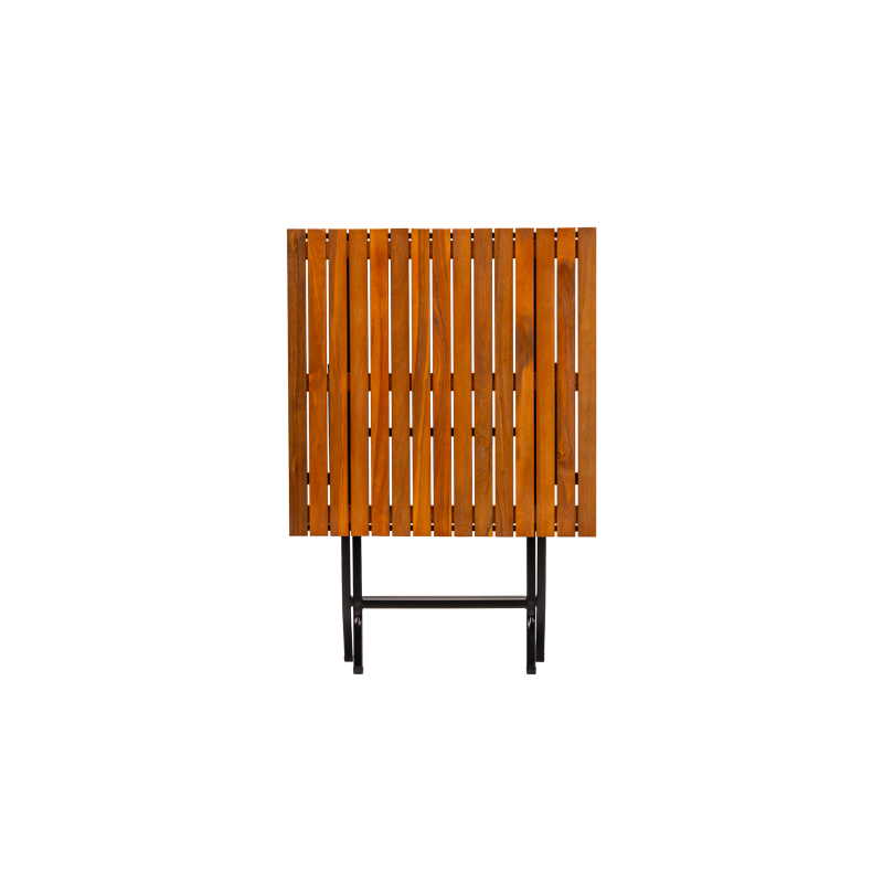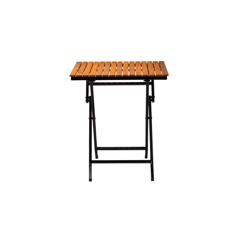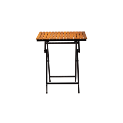 The stable, powder-coated steel construction ensures resistance to intensive use, while the wooden tabletop gives the table a natural and timeless character. Its foldable design makes storage easy and allows for quick preparation of the space for food service operations, which is particularly important in seasonal venues and wherever flexible layouts are essential.