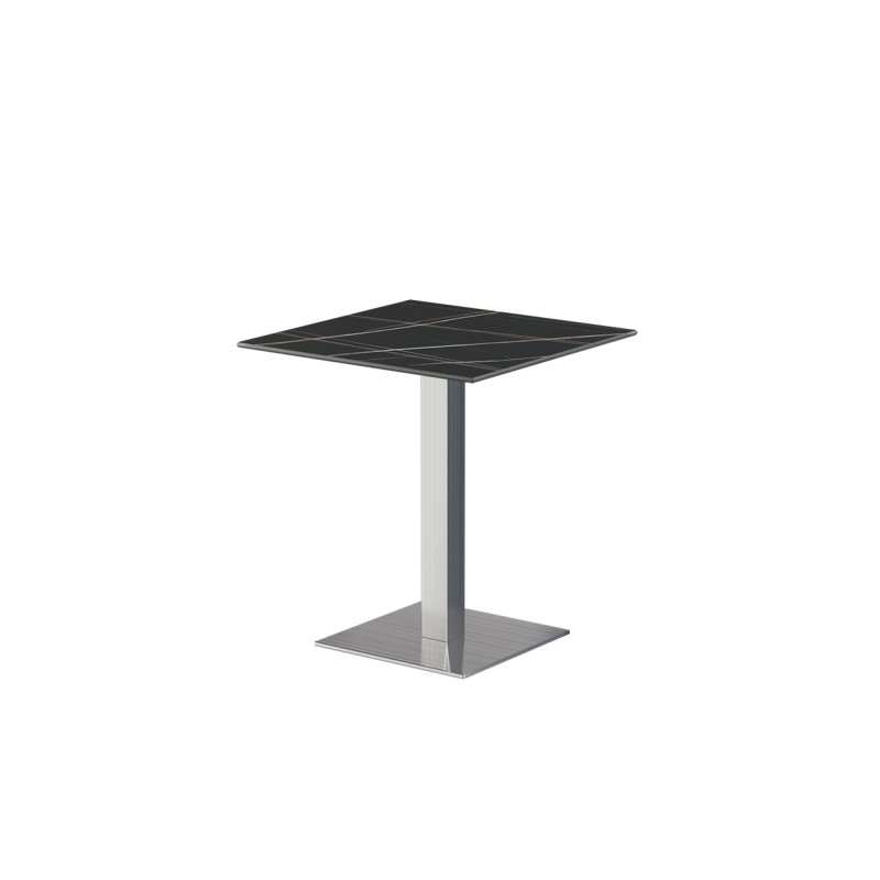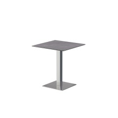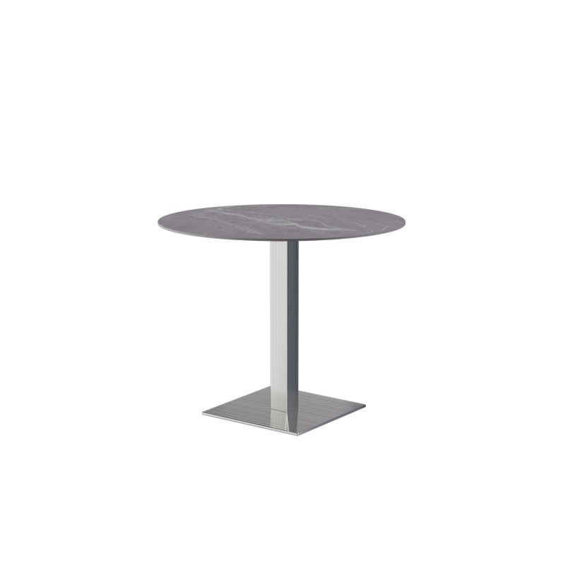 The Sigma beer garden table is one of two sister models – together with the Sigma R version, it forms a cohesive family of solutions for modern dining spaces. Both are made of durable stainless steel and differ in column geometry and base shape, allowing for better adaptation to specific design layouts.