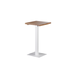 The wooden Alfa Bar table is a proposal for venues that want to combine solid craftsmanship with an elegant appearance. Its minimalist form works well in modern cafés, trendy bars and places where maximum guest comfort matters. The 38 mm oak wood top stands out with its durability and striking wood grain. The stable design is complemented by a powder-coated steel base available in three size variants.