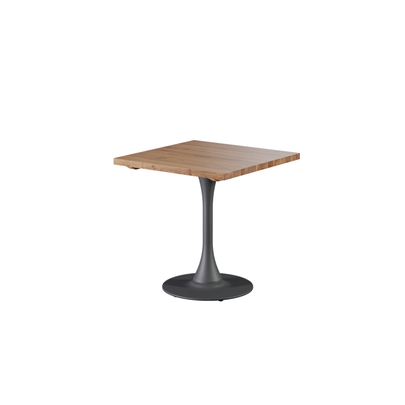 The construction of the ARIOSO café table is based on a slender, aesthetically pleasing column that gives the table a modern look. Its subtle form harmonizes with the heavy cast-iron base that stabilizes the entire piece. The base ensures solid support for the massive oak top, while the height of 74 cm is ideal for classic seating layouts. The durable base eliminates wobbling and shifting, meaning ARIOSO maintains stability even in intensively used venues.