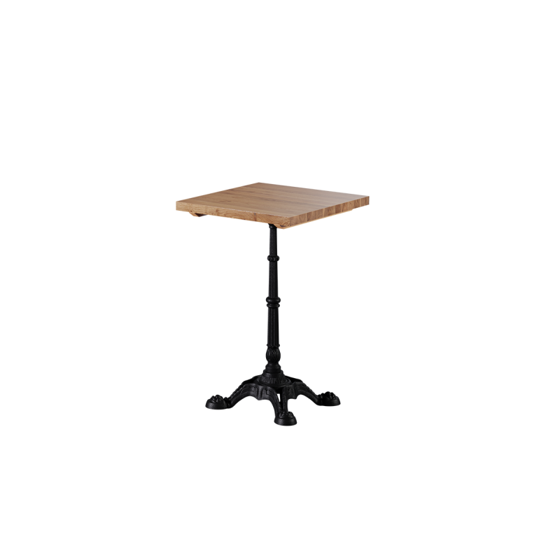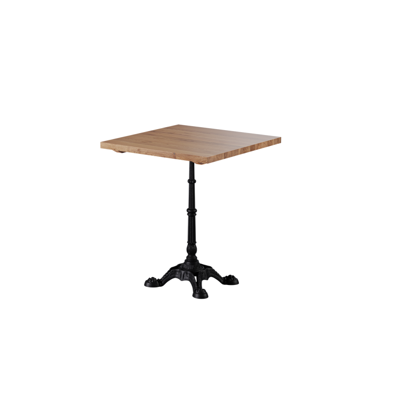 Cast iron performs exceptionally well under heavy loads and the demands of daily use. The strong central column provides solid support for the heavier oak top, keeping the entire structure in perfect balance.