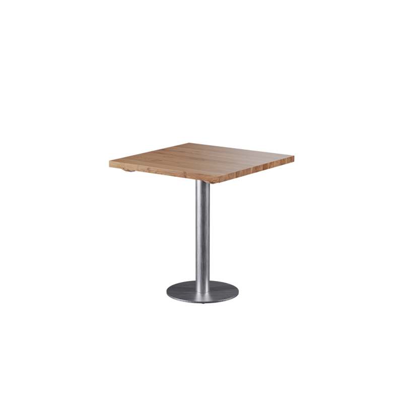 The table fits perfectly into Scandinavian-style cafés, bright interiors, and modern spaces where the contrast between steel and warm oak creates ideal balance. It looks great both alone and in arrangements of multiple tables – rhythmic, orderly, elegant.