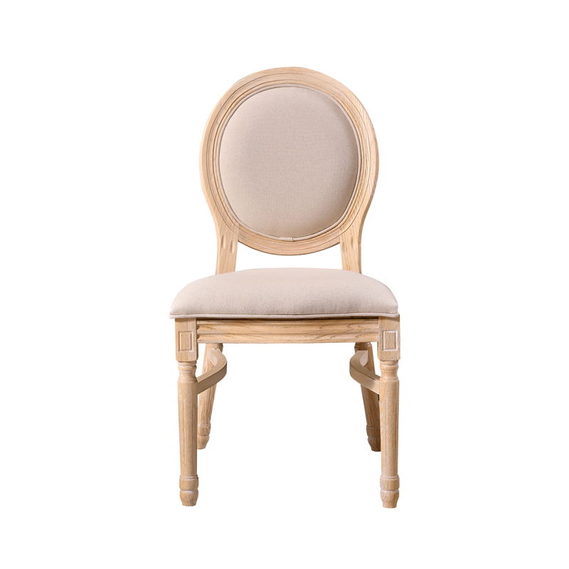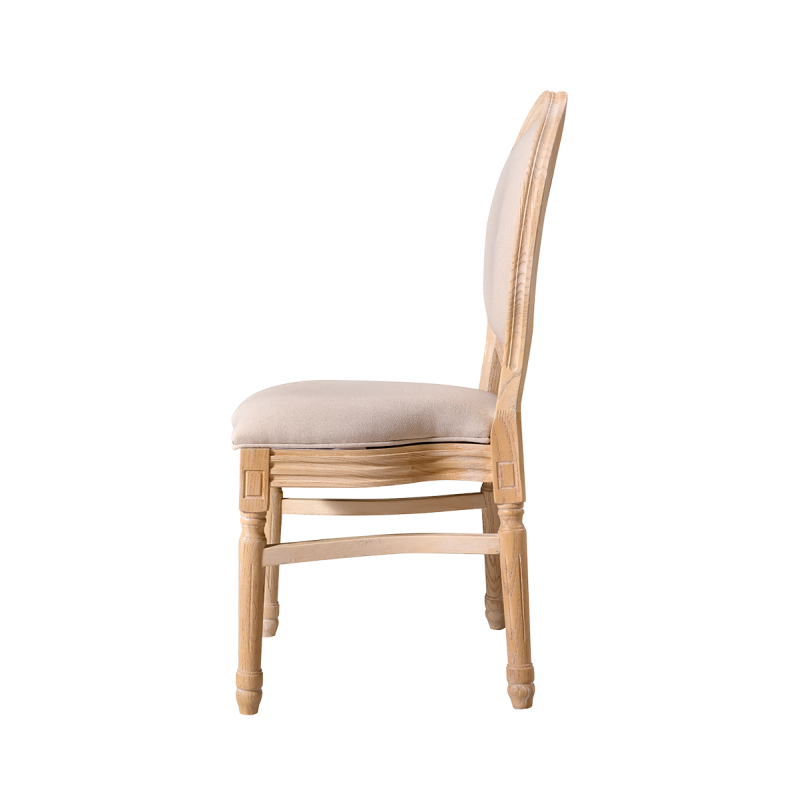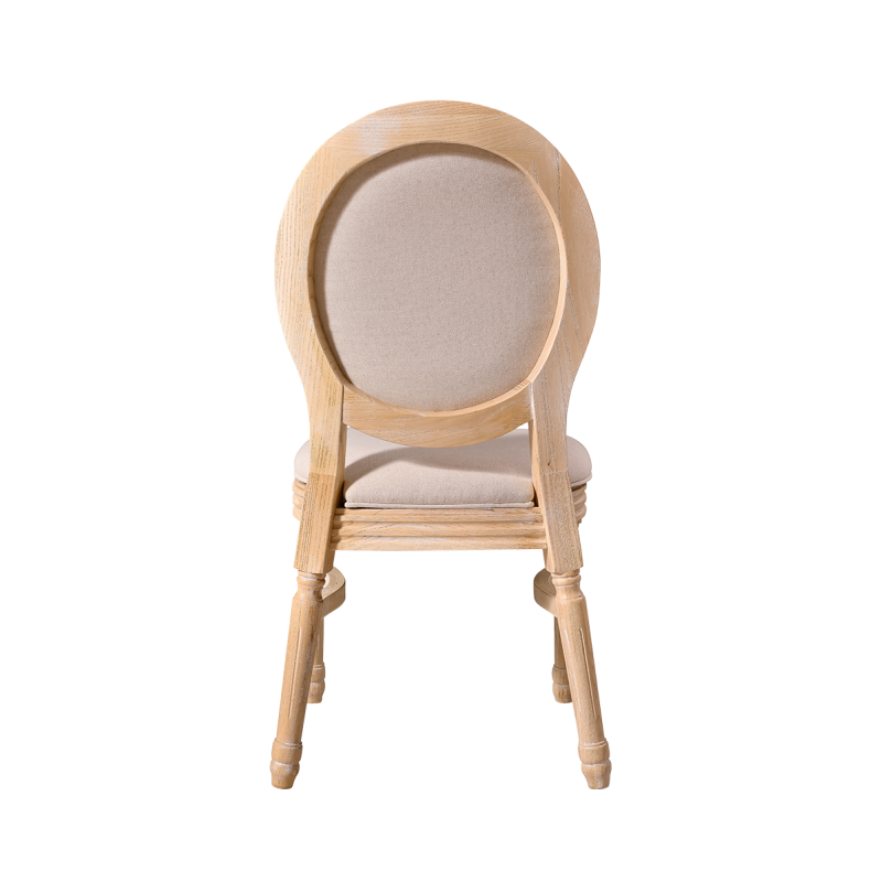 Made from solid wood, the chair ensures stability and durability, essential for daily use in event venues. Both the seat and the backrest are upholstered, providing exceptional comfort even during long receptions and celebrations.