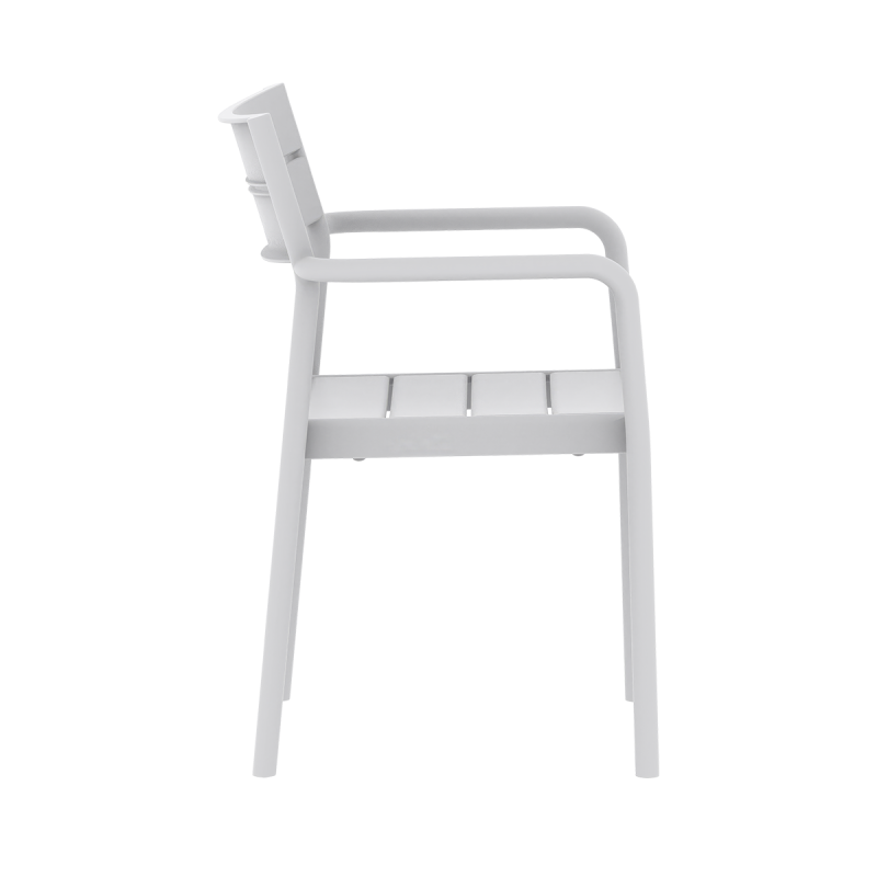 The integrated armrests are a natural extension of the structure. They provide comfortable arm support and enhance guest comfort in restaurant gardens, bars and bistros. The CAPRI ARM plastic chair is also UV-resistant and complies with the EN 581-1 standard for outdoor furniture.