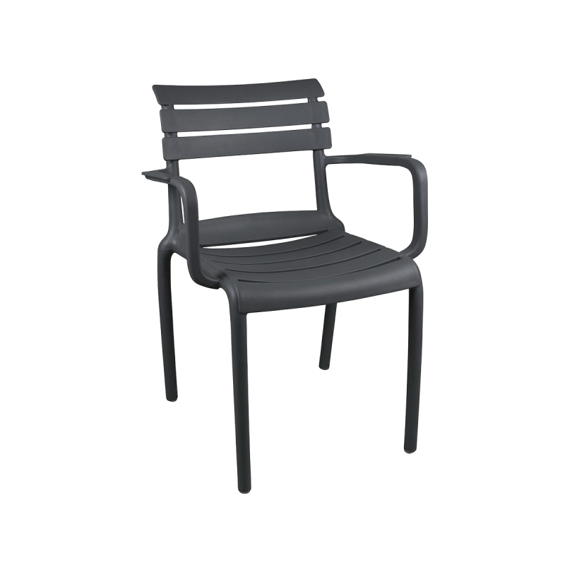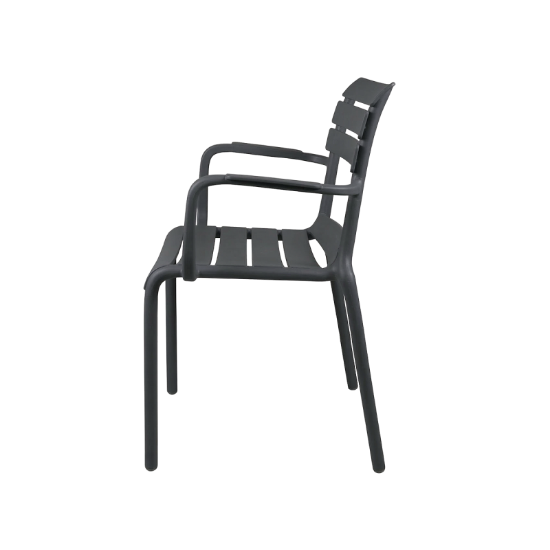 VELO is an outdoor chair with a light, open form and subtly profiled lines. The horizontal backrest slats and gently rounded armrests give the design a relaxed, summer-inspired character. This model looks great in restaurant gardens, at dining tables and in bistro spaces.