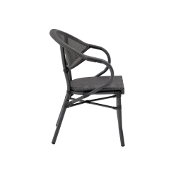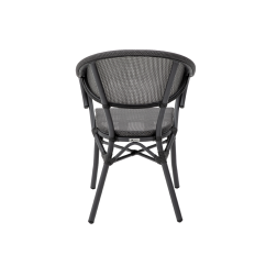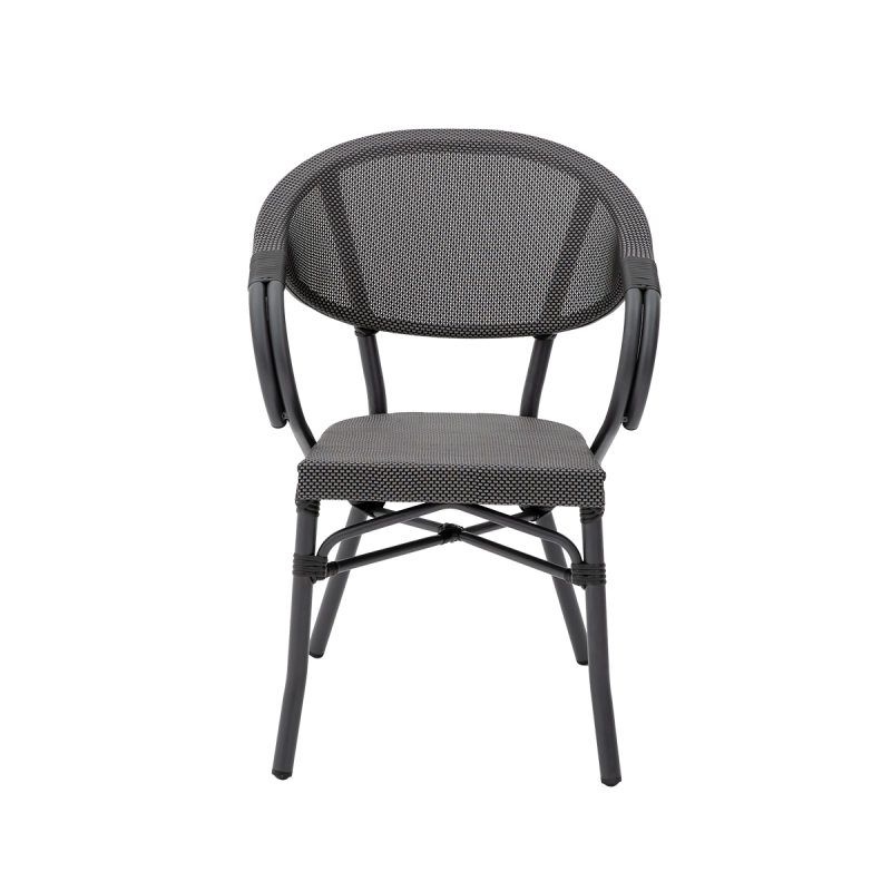 CAMILLO combines café-style ease with well-balanced design. The oval backrest flows smoothly into the armrests, creating a compact and elegant silhouette. The graphite weave adds depth and pairs beautifully with wood, stone or metal elements. This beer garden chair perfectly enhances the atmosphere of any carefully designed outdoor space.