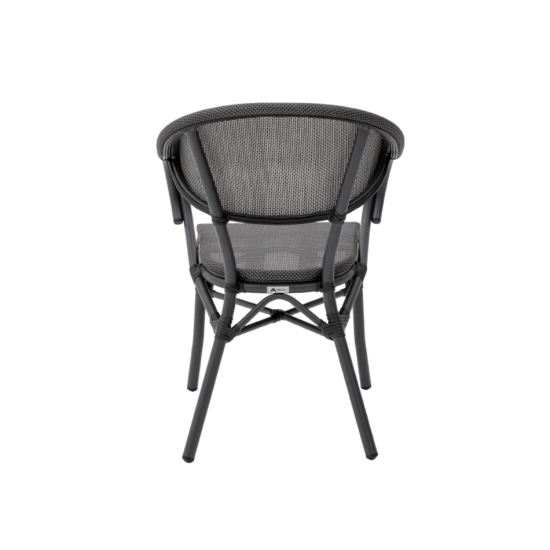 CAMILLO has been created for everyday use in the HoReCa sector. The structure is based on a lightweight aluminium frame that is corrosion-resistant and ready for full-season outdoor performance in varying weather conditions. The applied weave is durable and easy to clean, maintaining its appearance even under intensive use in restaurant gardens. Additional reinforcement in the form of a cross structure under the seat increases the overall stability of the chair.