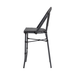 The seat and backrest of the MATTEO BAR are made of technorattan mesh stretched over the frame, creating an even and stable surface. This solution ensures comfort and flexibility, especially in high-traffic environments with frequent guest turnover. The material structure is uniform and resistant to deformation, maintaining its shape over time.