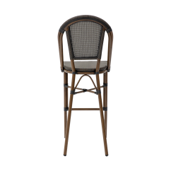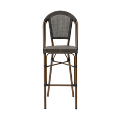 The seat and backrest of the MATTEO BAR are made of technorattan mesh stretched over the frame, creating an even and stable surface. This solution ensures comfort and flexibility, especially in high-traffic environments with frequent guest turnover. The material structure is uniform and resistant to deformation, maintaining its shape over time.