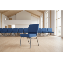 The AMBASSADOR Upholstered Church Chair is perfectly suited for churches, chapels, and parish halls. It is a popular choice for main naves, side chapels, catechetical rooms, and other meeting spaces for religious communities. Thanks to its row-linking and stacking functionality, it is also a practical solution for retreats, parish missions, and occasional events.