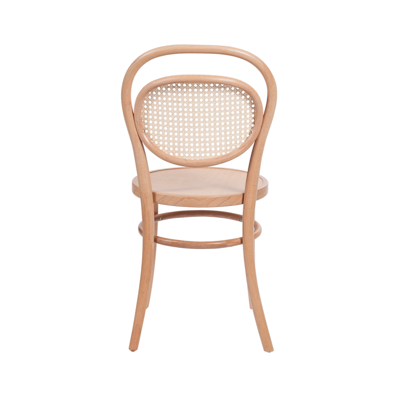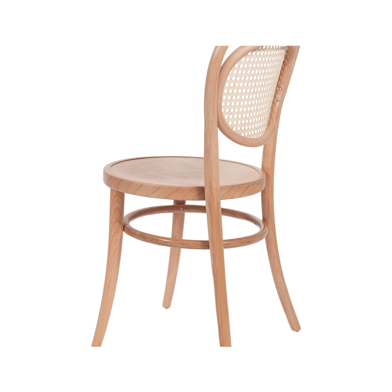 The ELLIPSE wooden chair stands out with its subtle oval backrest line and decorative woven cane , which gives it exceptional visual lightness. Natural beechwood combined with the bentwood structure creates a harmonious form inspired by classic design.