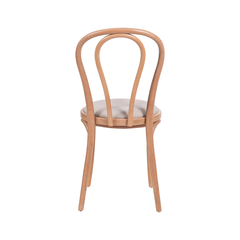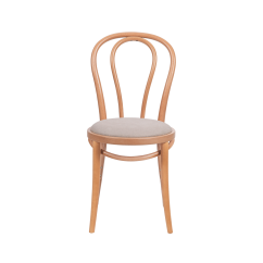 The MONET 18 bentwood chair with an upholstered seat is our proposal for venues that want to combine timeless aesthetics with premium comfort . This model fits perfectly into elegant restaurants, atmospheric cafés and hotels designed in a classic style. Its slim silhouette and lightweight form – combined with the natural wood tone – make it an ideal choice for demanding interiors.