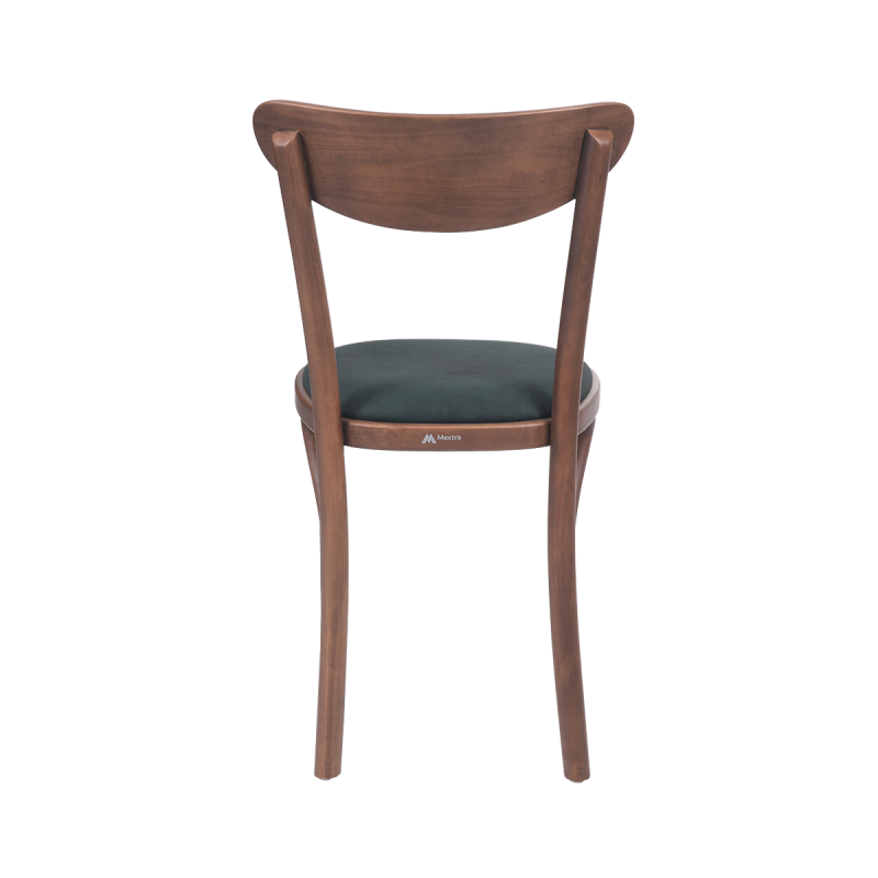 The BOOMERANG model works perfectly in retro-inspired restaurants and cafés, as well as in elegant hotel lobby areas. Natural wood warms the arrangement, while the dark green upholstered seat adds depth and character. This wooden chair creates a cohesive and refined interior concept. Its lightweight form does not overwhelm the space, subtly emphasizing the professional nature of the venue.